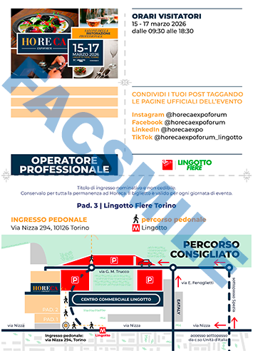 - l'evento è riservato esclusivamente ad OPERATORI del SETTORE HORECA. Gli organizzatori si riservano la possibilità di verificare la correttezza dei dati.